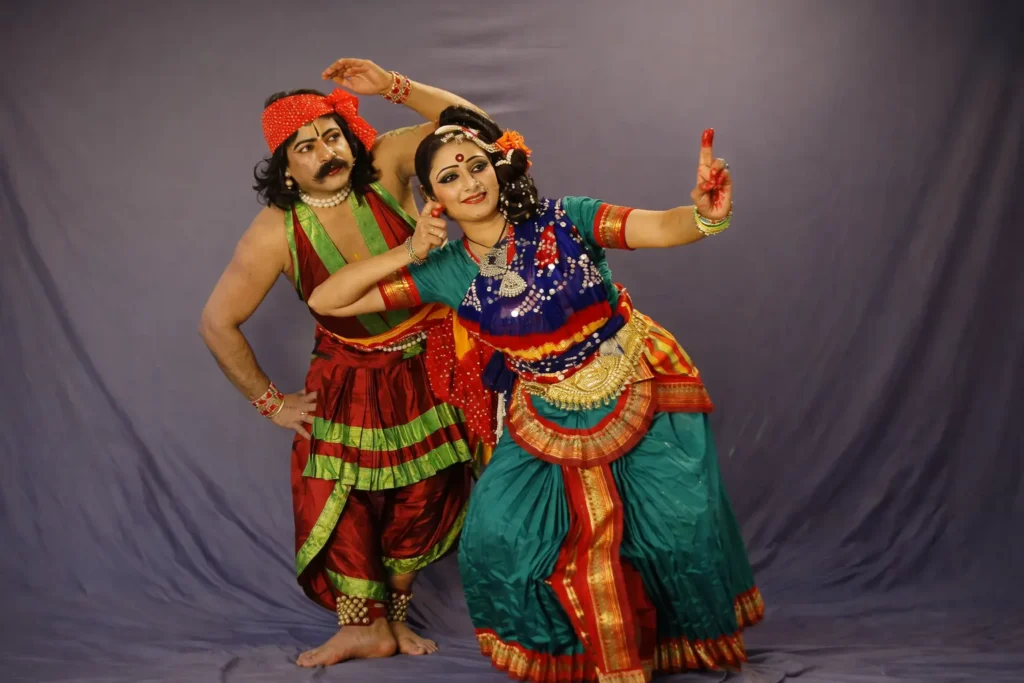 Graceful Kuchipudi training combining expressive storytelling, rhythmic movements, and traditional performance techniques.