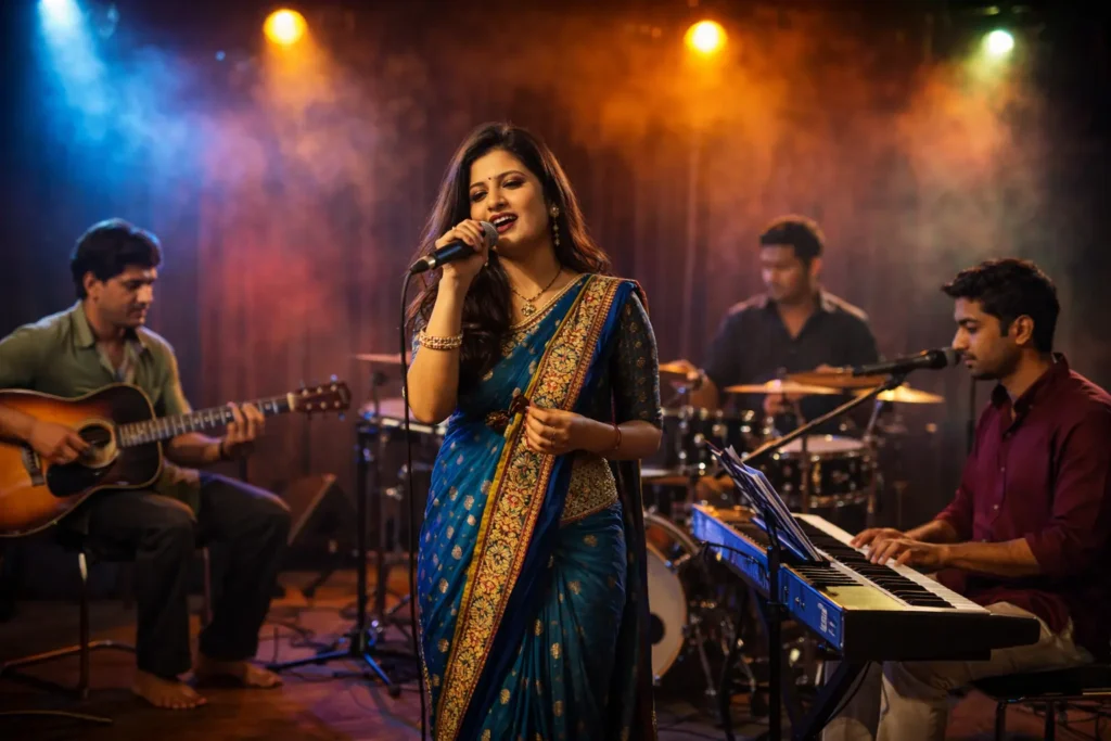 Light music classes help students explore melodic singing styles beyond classical forms, including devotional songs, film music, and modern compositions. These sessions focus on improving voice modulation, rhythm sense, and stage performance, making music enjoyable while strengthening musical skills.